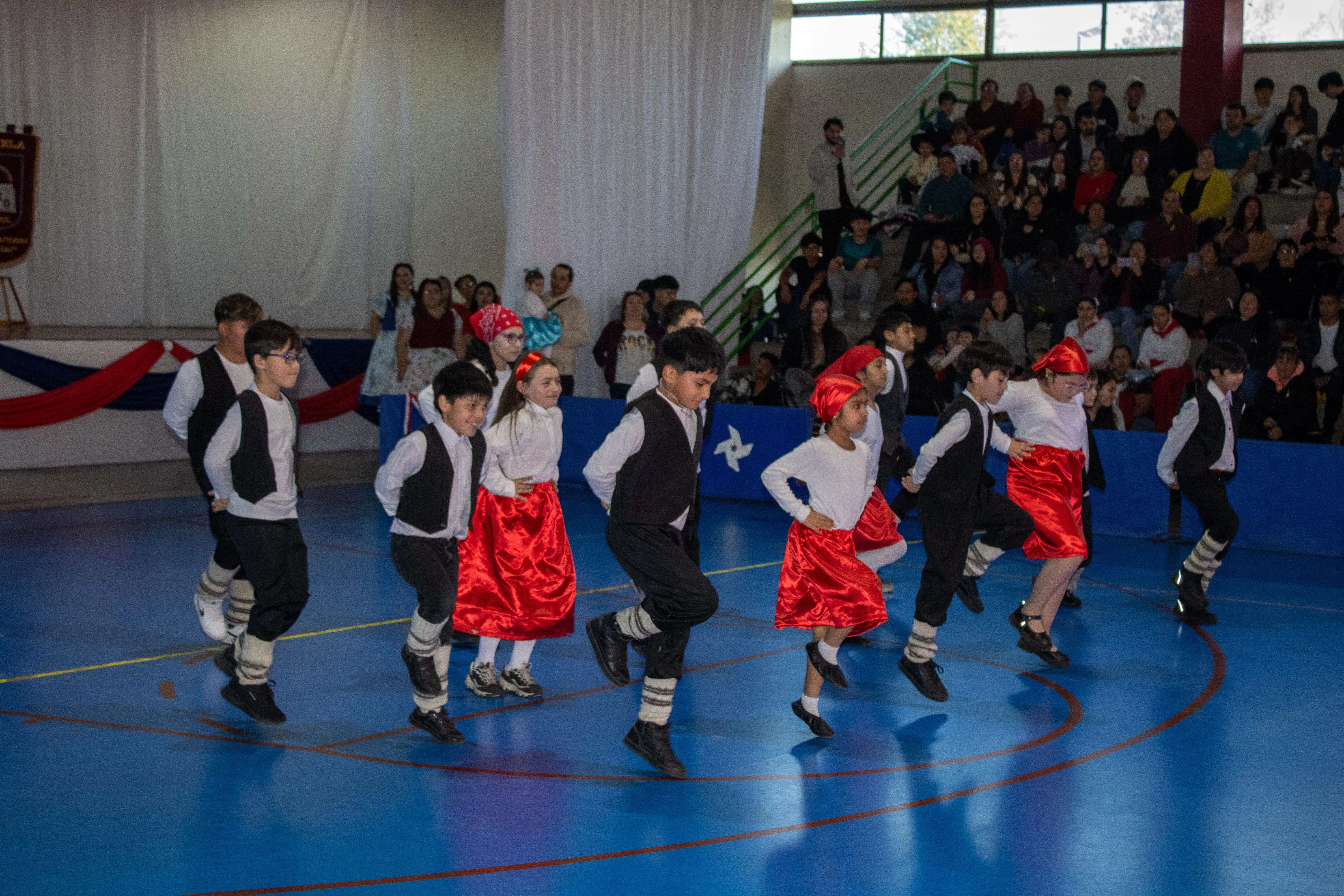 Todos los niveles de educación participaron en la representación de nuestros bailes típicos y fueron muy aplaudidos por los más de 800 asistentes a este recinto deportivo. Además, el Centro de Padres y Apoderados brindó un stand de gastronomía y productos de nuestra tradición Patria.